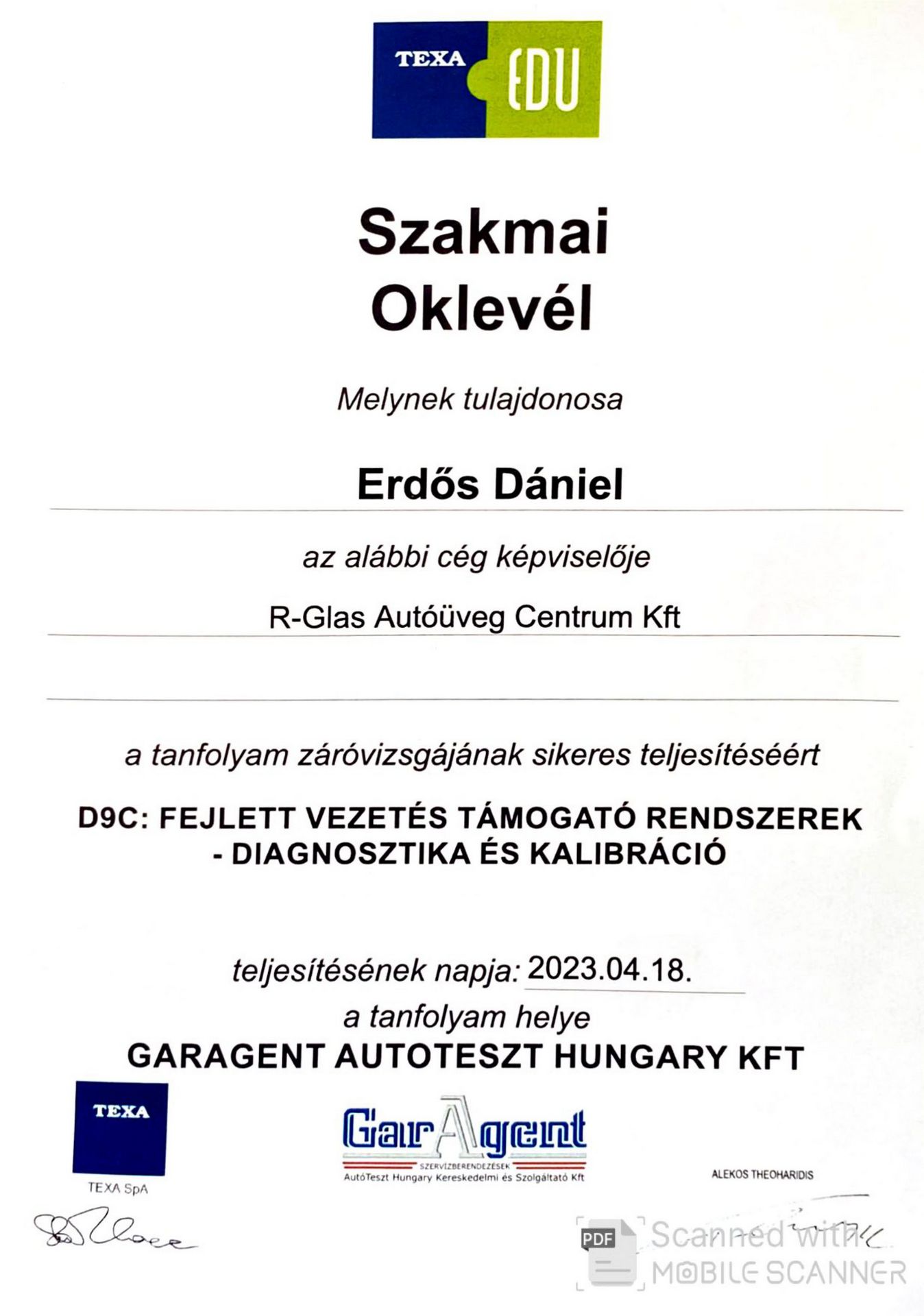 Cégünk a TEXA rendszerét használja, amely tartalmazza a leguniverzálisabb nagyteljesítményű diagnosztikai interfészt, a hozzá tartozó kiegészítőket, valamint a kalibrálással foglalkozó kollégák folyamatos szakmai továbbképzését, így biztosítva a gépjárművek vezetéstámogató rendszereinek sikeres